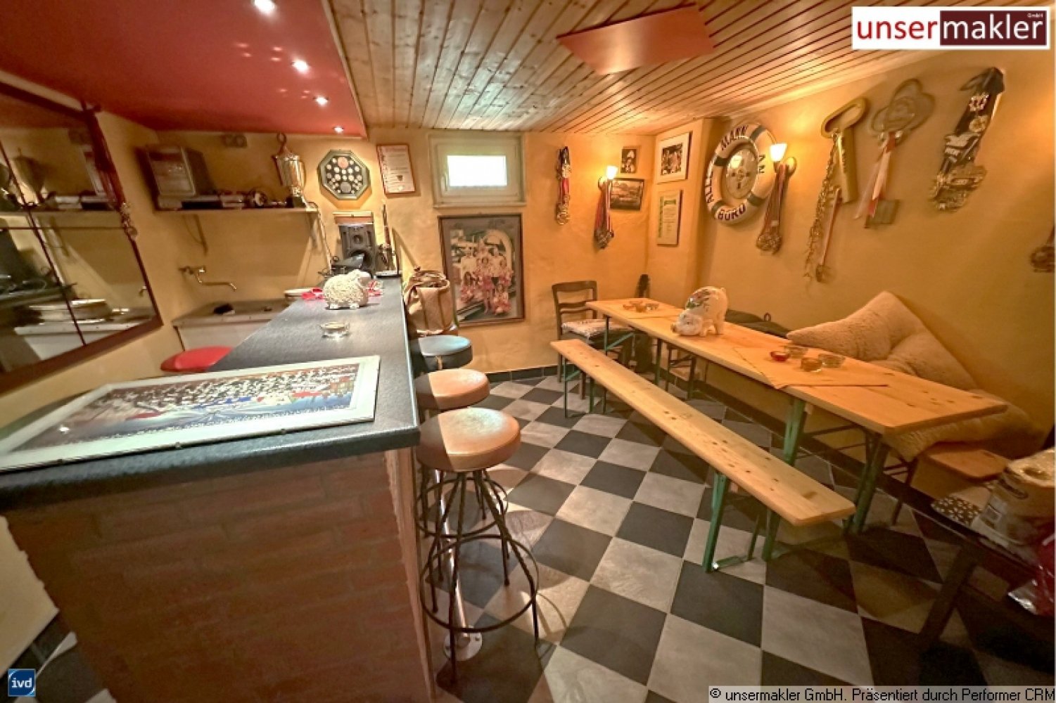 Keller mit WC und Zugang zum rückseitigen Garten, Party- Waschraum und Abstellmöglichkeiten.