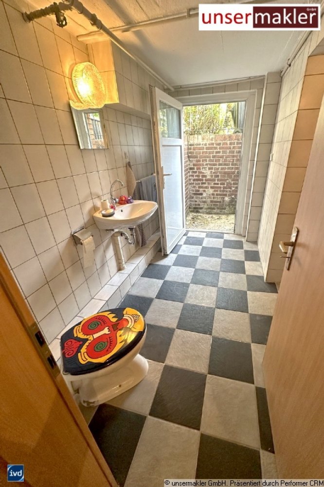Keller mit WC und Zugang zum rückseitigen Garten, Party- Waschraum und Abstellmöglichkeiten.